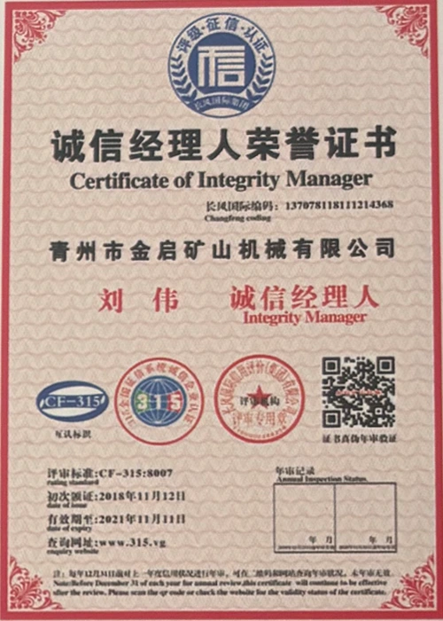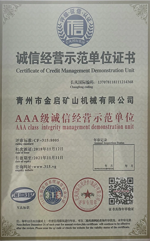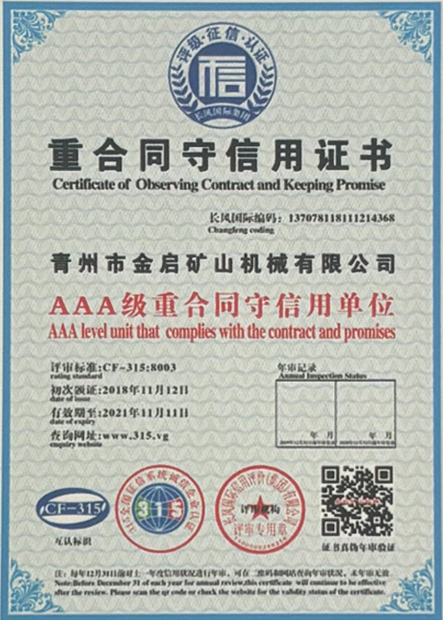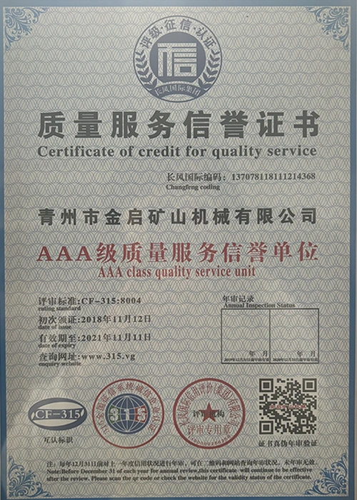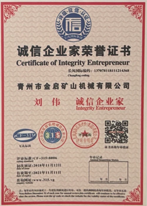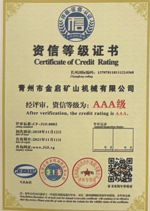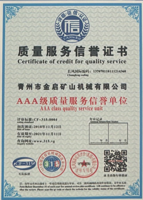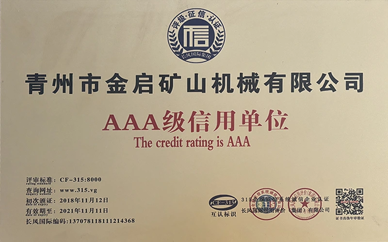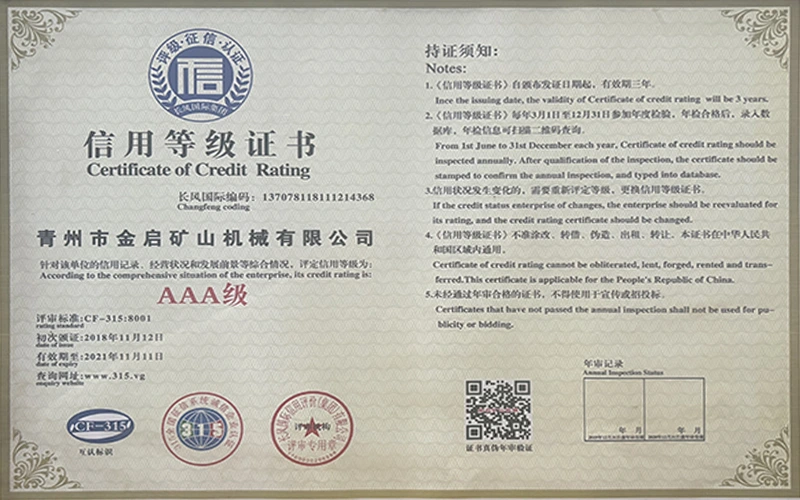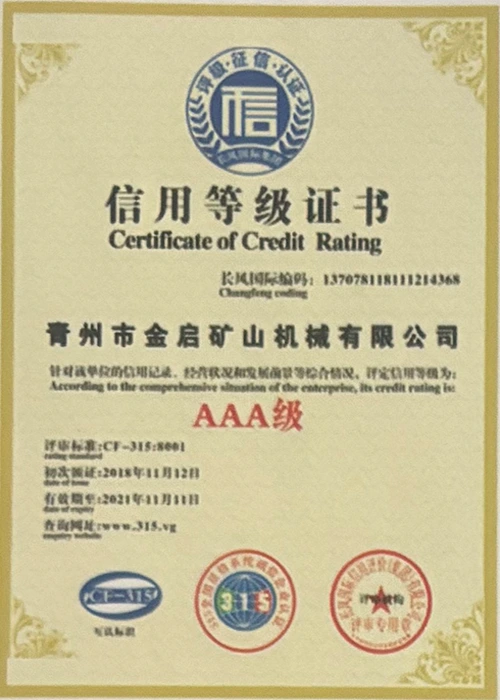 Com anos de profunda experiência na indústria, contando com um rigoroso controle de qualidade e inovação tecnológica contínua, a empresa obteve uma série de qualificações, certificações e certificados de patentes autorizados, incluindo certificação do sistema de gestão de qualidade ISO, certificação de segurança de produtos de mineração, bem como múltiplas patentes de invenção e patentes de modelo de utilidade para otimização de estrutura de equipamentos e atualização de tecnologia de economia de energia, demonstrando profunda força técnica e garantia de produção compatível.