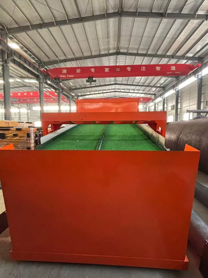 3. Quando a correia circula para a parte inferior, a água de alta pressão descarrega automaticamente o ouro enriquecido na calha de coleta de ouro, realizando uma operação contínua.