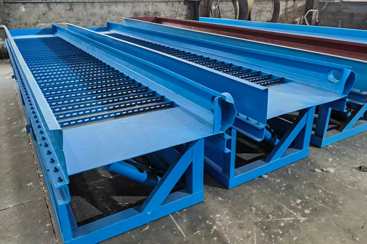 Mesa vibratória: De acordo com a finalidade da aplicação, as mesas vibratórias podem ser divididas em mesas vibratórias de granulação grossa, mesas vibratórias de granulação fina e mesas vibratórias de limo. Eles apresentam alta precisão de separação e são frequentemente usados para processar minérios de ouro de granulação fina.