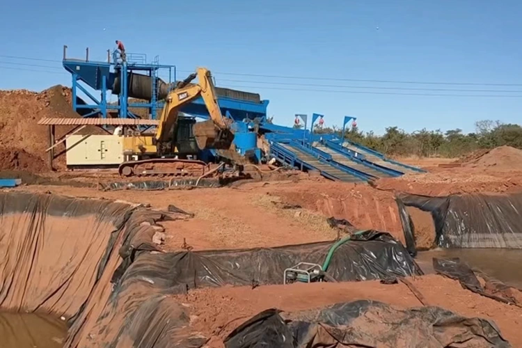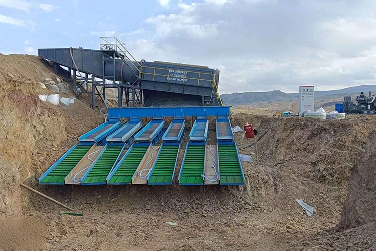 Planta móvel de mineração de ouro: É o principal equipamento para mineração de ouro terrestre, com relocação flexível. Integra todas as funções de processo de alimentação, triagem e separação de ouro. Após a remoção das pedras pela peneira trommel, a pasta de minério é então separada por equipamentos como caixas de eclusas e concentradores centrífugos.